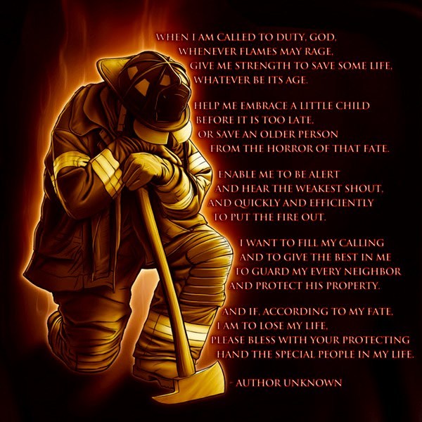 Fire Fighters Prayer – When I am Called to Duty, God. Whenever flames may rage, Give me strength to save some life, Whatever be its age … Click to finish reading the rest of the fire fighters prayer. #FireFighters #FireFightersPrayer Firefighters Prayer — Courageous Christian Father