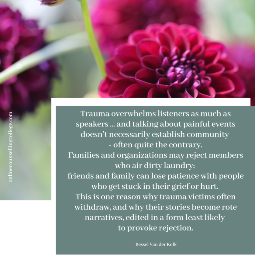 Originally posted on Don’t Lose Hope : “Trauma overwhelms listeners as much as speakers … and talking about painful events doesn’t necessarily establish community – often quite the contrary.