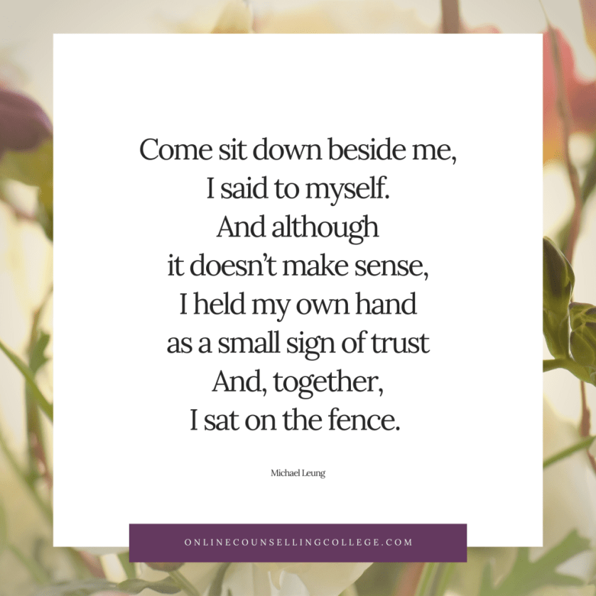 On those days when we feel that we don’t fit in, when we feel so alone, like no-one understands, we can sit beside ourselves.