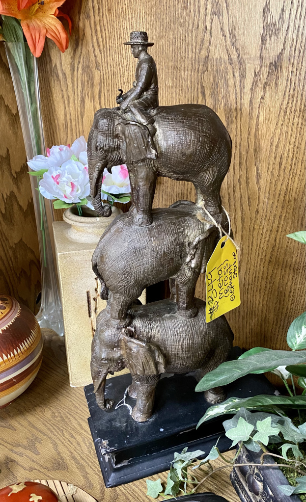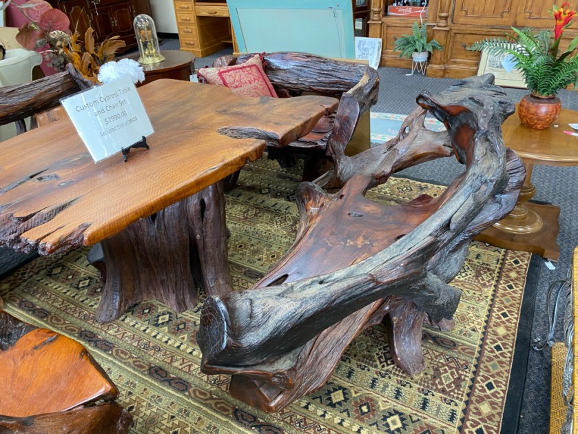 A reward was in order. I took myself to lunch at Sweet Pea Cafe in Tallahassee then I stopped by a local thrift shop to see if they had anything interesting. And, wow! I was rewarded with several neat pieces. I didn’t buy anything, but I was tempted. See if you can figure out which item I almost brought back to Doright Manor.