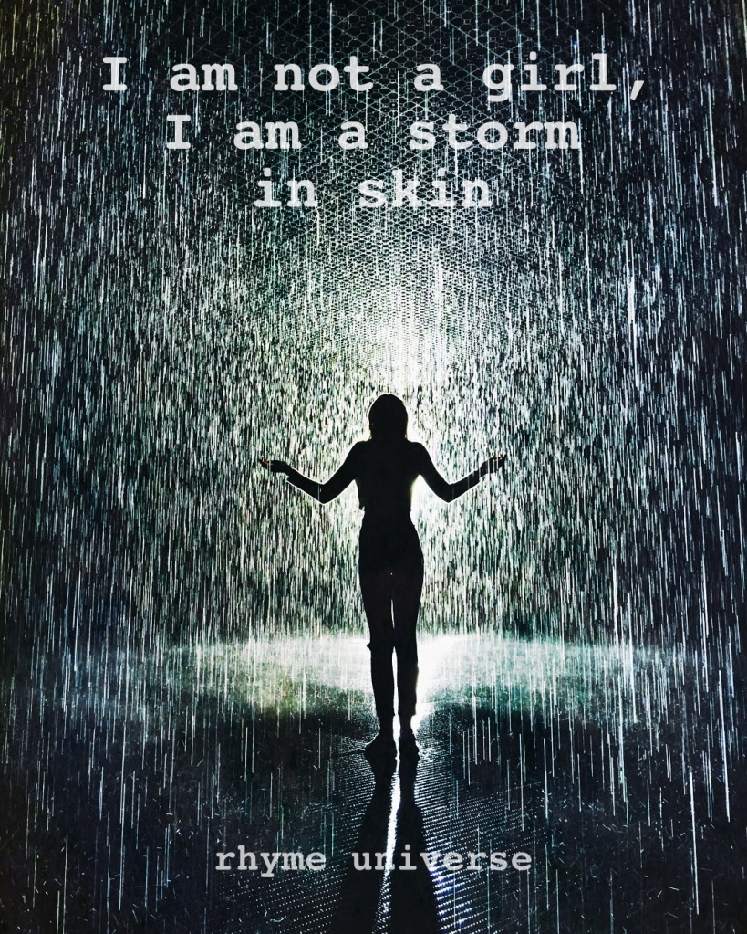 ENLIGHTENING Deep, swift, groaning grumbles, pounding in ‘head splitting’ bubble. Static. Buzzing drones, midst air, ominous flash of lightening, flares. Throbbing twinges in her bones, the drum of darkness, feels cold. No creature born of blood and flesh, escapes the wrath, of shocking net. Flickering sun, clashes with clouds. in a tsunami, of echoing sounds. Summoned from their hidden lairs, ‘Those’ who are entrusted to its care. Hearing the wind chimes jangle, rain catchers, are tilted, at angle. Lounging around in shaded porches, transfixed, to the vexing of light torches. Sipping on tea of chamomile flowers, lemon, fruity, sweet and apple sour. Listening ears, breathe in the wind, weathered eye, in vigil. So it begins. Lips now puckered into whistles, celebrating, intense electric bristles. Gather round the ‘Storm Witches’ Now. Before the thunderbolt blitzes. Inhaling the future, exhaling the past, emotive spells of storm’s furore. Be cast…