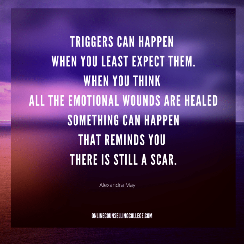“Triggers can happen when you least expect them. When you think all the emotional wounds are healed something can happen that reminds you there is still a scar.” – Alexandra May