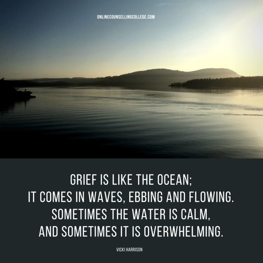 “Grief is like the ocean; it comes in waves, ebbing and flowing. Sometimes the water is calm, and sometimes it is overwhelming.” – Vikki Harrison