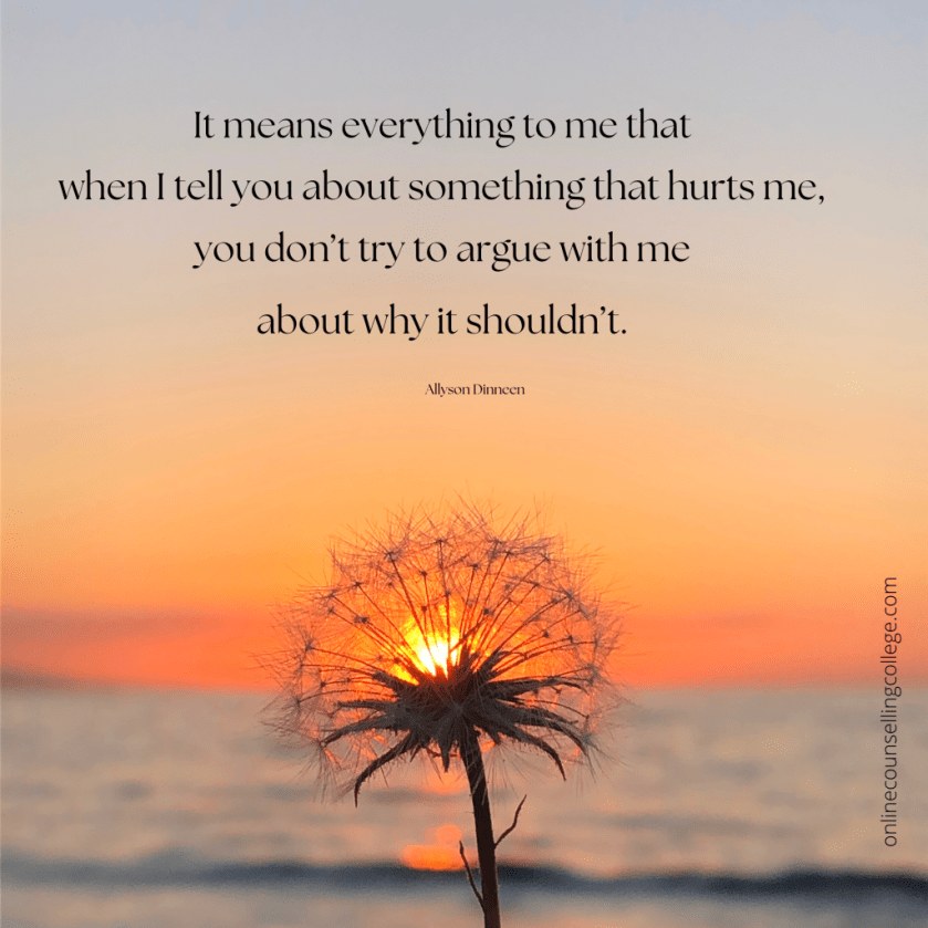 “It means everything to me that when I tell you about something that hurts me, you don’t try to argue with me about why it shouldn’t.” – Allyson Dinneen