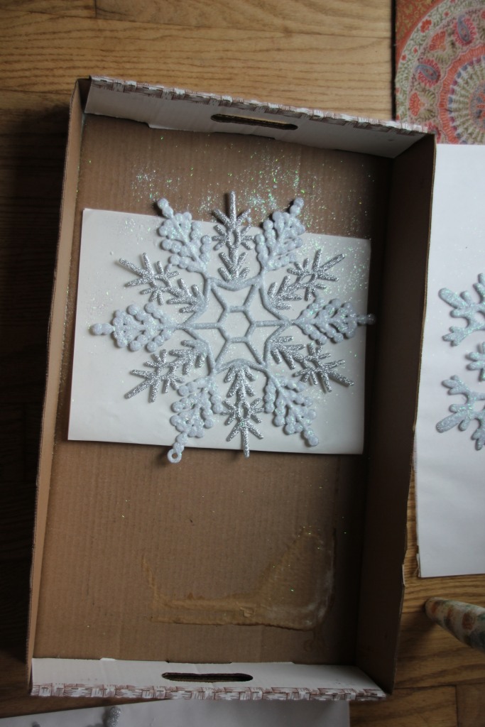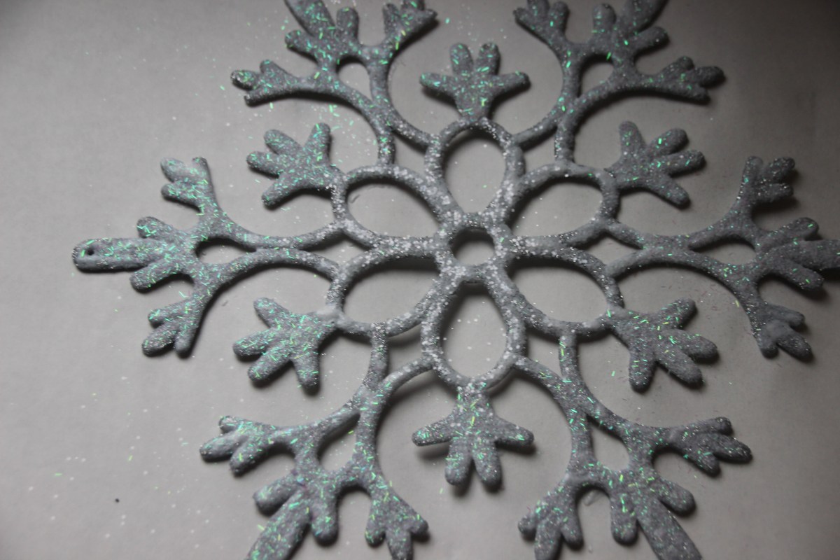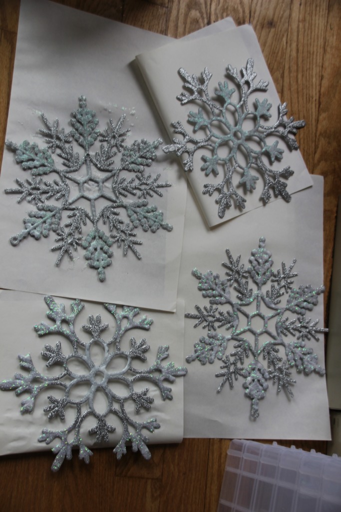 I ordered giant silver snowflakes instead of white to contrast with the white doors and white blinds in the windows.