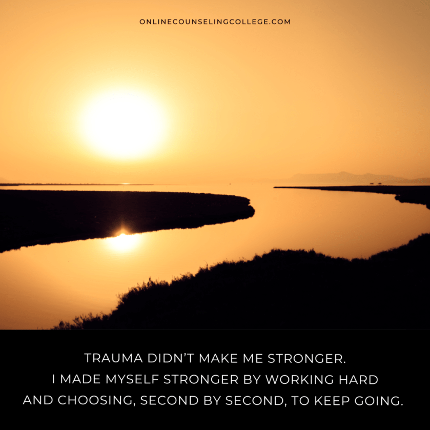 “Trauma didn’t make me stronger. I made myself stronger by working hard and by choosing, second by second, to keep going.”