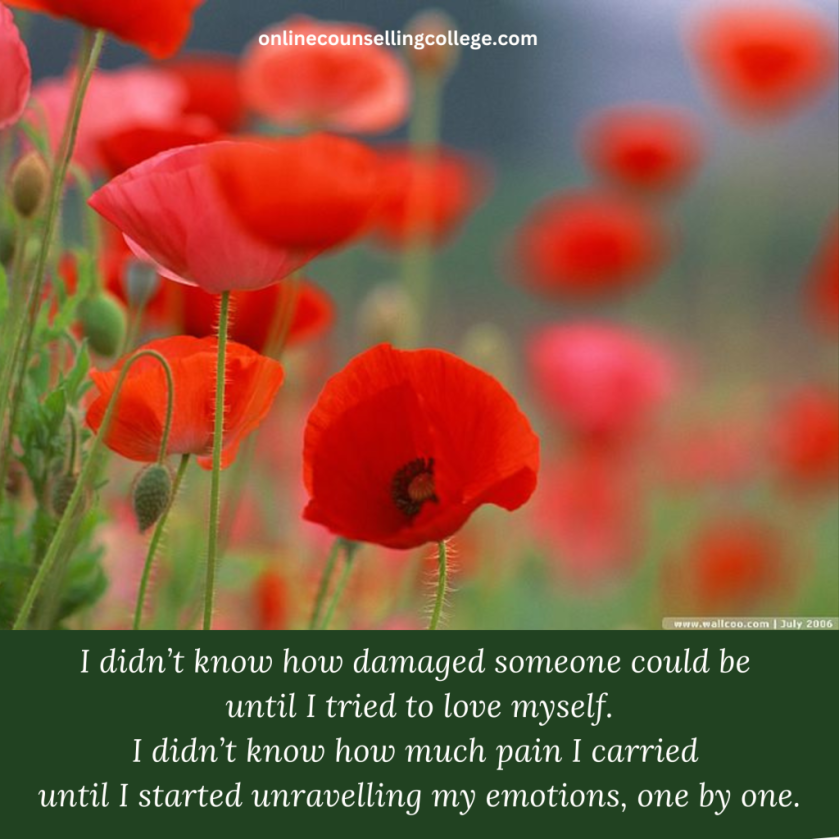 “I didn’t know how damaged someone could be until I tried to love myself. I didn’t know how much pain I carried until I started unravelling my emotions, one by one.” – Grace Espinoza