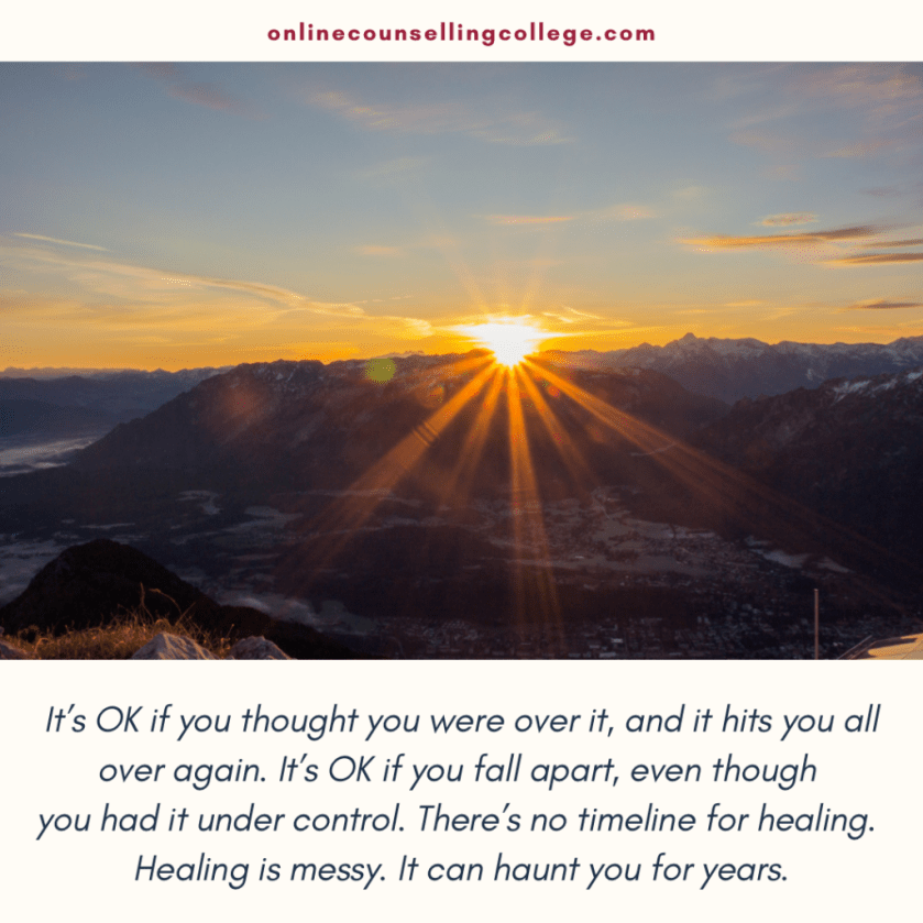 “It’s OK if you thought you were over it, and it hits you all over again. It’s OK if you fall apart, even though you had it under control. There’s no timeline for healing. Healing is messy. It can haunt you for years.”