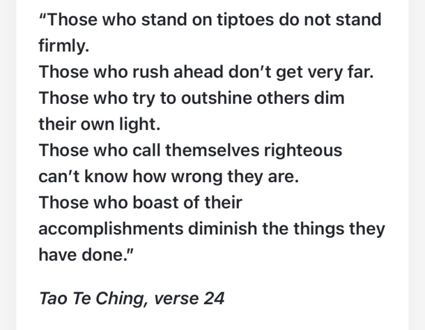 So when I came across the quote from the Tao I understood why it feels so uncomfortable for me when George tells Clay that he is not as good as him – (and this happens almost every 30 minutes in regards to ANYTHING).